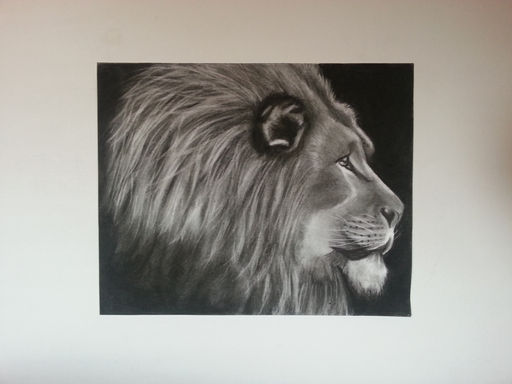 "Once I start a project I get quite obsessive over it. I'll spend hours and hours trying to get all the details into an area, and I'll always feel like its never really good enough. I'll begin with the outline and pick my favorite detail. Then I'll just start filling the image with charcoal and erasing away at the highlights. Then I start filling the black over and over, it never really feels black enough. My favorite tools are my hands. Nothing seems to rub or smudge as good as my finger tips. I know they always say not to let the oils of your finger tips touch the canvas, but in a way it's like I'm putting a part of me into the drawing. I don't particularly like to have my art work in my home because it almost haunts me. The work never really feels finished so I might be tempted to take it down and re do some parts."